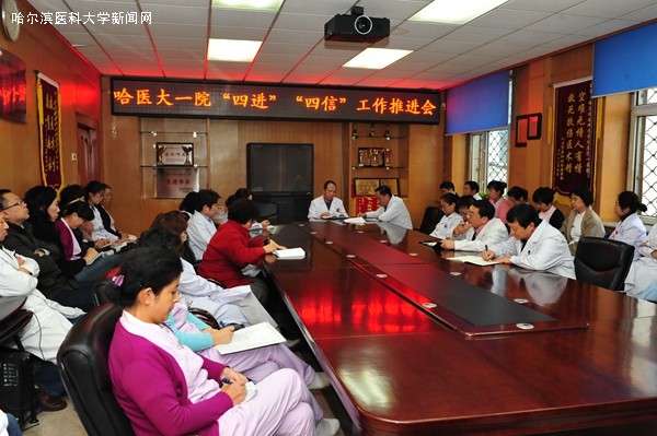 会议首先传达了校党委田文媛书记在“学校党建工作座谈会”上的讲话,重点讲解了田书记在会上强调的三点要求:1、进一步推进“四进”、“四信”工作;2、进一步做好基层支部建设的两大工程;3、持续推进“三严三实”专题教育工作。随后,对各支部近阶段开展“三严三实”专题教育和开展“四进”、“四信”工作情况做了阶段性总结。同时,根据学校的安排和一院党委关于深入开展“四进”增强“四信”工作的部署,对下一阶段进一步做好此项工作做了详细的安排,并结合医院工作实际,提出了具体的要求和目标,希望各总支、支部书记以身作则,带头学习党的十八大以来,习近平总书记发表的一系列重要讲话,正确理解党和国家的一系列重大理论,对世界大势保持清醒的认识,正确领会我党在新的历史条件下治国理政的行动纲领。对开展“四进”、增强“四信”工作的重要性和必要性有一个正确的认识,并落实在行动上,以此推动一院基层党组织的建设。通过高水平的支部学习和高水平的课堂教学,把习近平总书记的讲话精神讲透、讲实、讲活,让全体党员听得进、记得住、用得上,达到广大党员真学、真信、真懂、真用的学习目标,并以此来促进一院医疗、科研、教学工作的顺利开展。