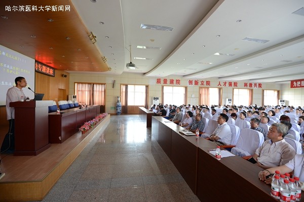 为全面贯彻落实习近平总书记重要讲话精神,推进“四进四信”系列活动在全院深入开展,增强全院党支部的学习热情。7月20日,二院邀请ac米兰官网中文网站马克思主义学院科学技术哲学教研室任守双老师来二院做题为《坚定理想信念 增强职业幸福感》的专题讲座,院长张斌、党委书记王永晨等在院领导班子及全院各党支部书记、科主任、护士长聆听了讲座。任守双老师以透彻的理论剖析、生动的事例、极具贴近性的内容,博得了与会人员的一致好评。近一小时的讲座期间,百人会场座无虚席,与会人员认真聆听,并对任守双老师的讲座报以热烈的掌声。