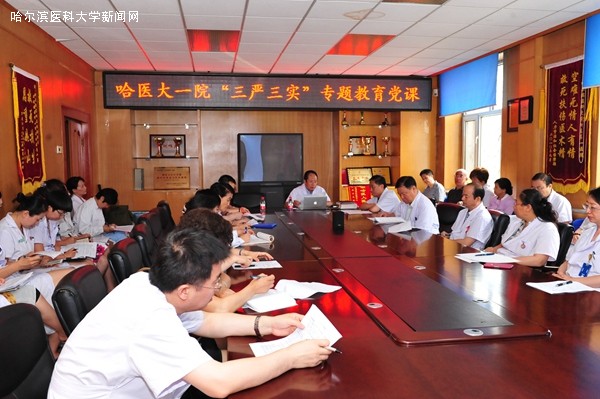 6月25日,为推进“三严三实”专题教育,根据学校党委的部署,一院党委组织了第二次专题党课,由院党委书记赵世光讲“践行三严三实学习心得体会”专题党课,院党政班子成员、副处级以上领导干部、各党总支、党支部书记60余人参加了学习。