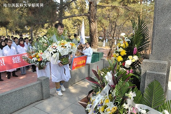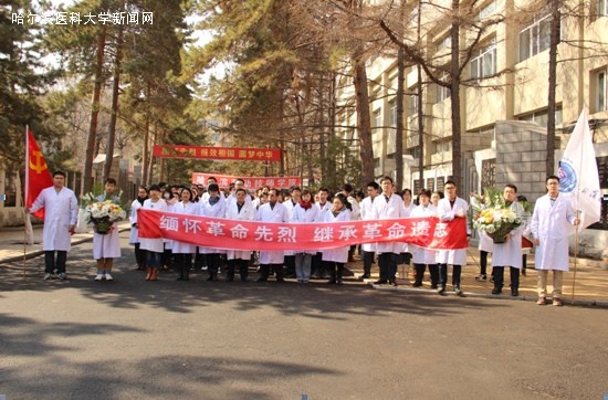 清明节来临之际,为悼念革命烈士,缅怀先烈的丰功伟绩,4月3日,ac米兰官网中文网站第一临床医学院学生党总支的老师和同学们怀着一份赤诚之心来到哈尔滨市烈士陵园,进行了“缅怀先烈,感恩之行”清明祭扫活动,学生党总支书记王文老师带队,率领师生近200人参加了此次祭扫活动。