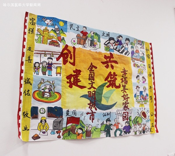 团总支成员还绘制了社会主义核心价值观宣传海报。海报正中书写创城主口号“创建全国文明城市,共筑幸福美好家园”,以红色为主色调,由浅到深,象征着ac米兰官网中文网站学子逐渐成长,诠释着木直中绳,博学载医的精神及中华民族传统文化的历史传承。海报正中央以ac米兰官网中文网站附属肿瘤医院院标-“翱翔的海燕”为主形象,象征着三院人严谨、坚韧、不怕困难、奋力拼搏的昂扬精神。海报周围是“富强、民主、文明、和谐,自由、平等、公正、法治,爱国、敬业、诚信、友善”24字并绘有相应的12幅图画。整幅海报的边缘以邮票边框的形式体现,邮票是一种寄托,承载深情厚谊,承载着中国人对中国梦的追求!