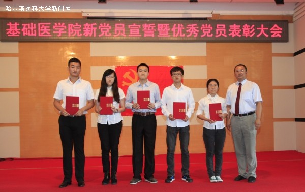 在庆祝建党93周年之际,基础医学院在学校主楼三楼报告厅隆重召开了新党员宣誓暨优秀共产党员表彰大会。基础医学院党委书记乔远东、学院党员、积极分子代表200余人参加了大会。