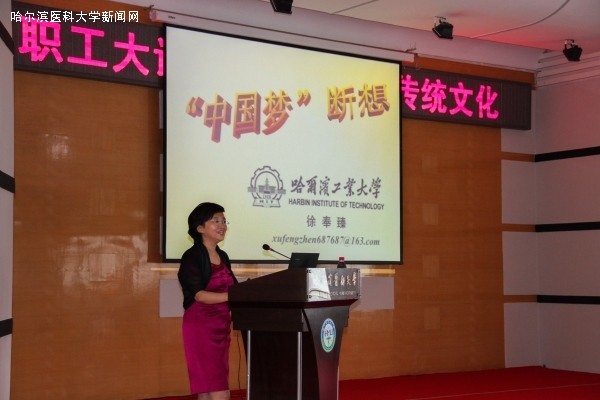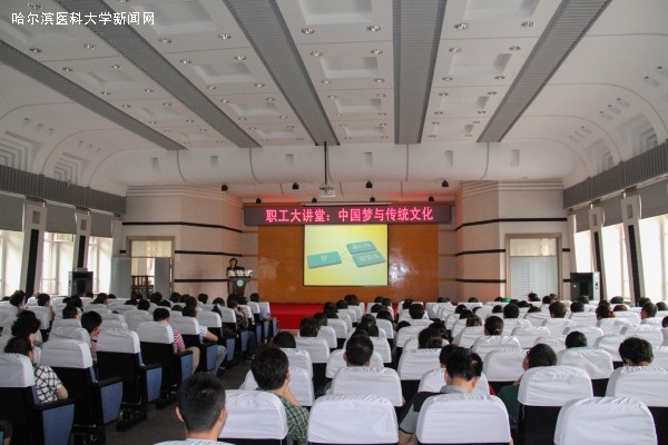 为提高马克思主义理论素养,更好地内化社会主义核心价值观,进一步扩宽视野、启迪思维,丰富广大教职工的知识结构,6月5日下午,学校工会举办职工大讲堂第九讲,邀请“全国首届思政课教学能手”第一名,全国高校思想政治理论课教师,2013年度影响力十佳标兵人物,哈尔滨工业大学马克思主义学院副院长俆奉臻教授为全校180名教职工代表做了题为《中国梦与传统文化》的专题讲座。学校领导工会主席杨平出席了此次活动。