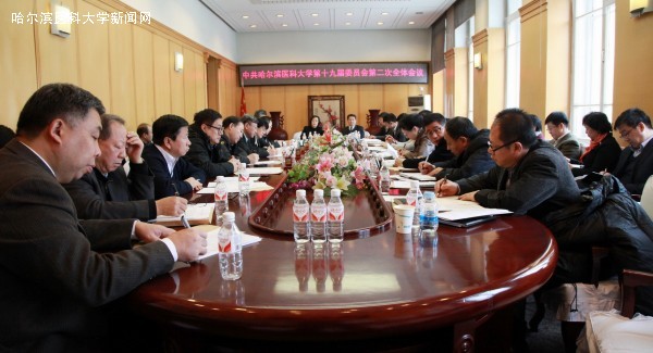 田文媛书记在报告中说,2013年,学校党委常委会在上级党委的正确领导下,高举中国特色社会主义伟大旗帜,以邓小平理论、“三个代表”重要思想、科学发展观为指导,认真学习贯彻党的十八大、十八届三中全会、全国第二十一次高校党建工作会议精神,全面贯彻落实学校第十九次党代会提出的奋斗目标和主要任务,促进学校各项事业取得新的进展。一年来,学校常委会主要抓了以下几件大事:一是认真抓好党的十八大精神和习近平总书记系列重要讲话精神的学习宣传贯彻;二是扎实深入开展党的群众路线教育实践活动;三是统筹推动学校各项事业科学发展;四是不断提高党的建设科学化水平。田书记强调,谋划未来发展,要紧紧围绕新形势、新特点,在如下几方面认真思考:一是全面学习领会党的十八届三中全会作出全面深化改革的决定,高校改革任务很重,我们应做好充分思想准备和工作准备,争取主动、有序推进学校改革创新;二是第二十二次全国高校党的建设工作会议把加强学校意识形态工作作为明年党建工作的首要任务;三是整改落实、建章立制任务依然艰巨,重点解决重大的中长期任务,开展好制度的建立和执行,进一步加强作风建设;四是反腐败的高压态势表明反腐败工作无禁区、无特区,要重点贯彻好卫计委“九不准”的规定;五是信息化建设是教育改革的需要、科学化管理的需要、意识形态的需要,加强信息化建设已迫在眉睫。要认真分析面临的新情况、新特点以及党和国家的新要求,研究确定明年工作思路和工作重点。常委会将团结带领全校党员干部职工,攻坚克难,改革创新,努力开创学校发展新局面。