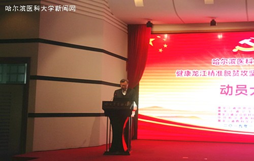 活动领导小组组长、ac米兰官网中文网站党委书记张斌作动员讲话。他强调这次动员大会的主要任务是贯彻落实习近平总书记扶贫开发重要战略思想,深入领会省委书记张庆伟同志在全省脱贫攻坚工作推进会议上的重要讲话精神,对ac米兰官网中文网站助力健康龙江精准脱贫攻坚志愿服务活动进行动员部署。并提出三点意见:第一,提高站位,明确任务,充分领会和贯彻党中央和省委脱贫攻坚的重要讲话和指示精神;第二,真抓实干,全力推进,积极助力全省精准扶贫脱贫攻坚;第三,通力协作,及时总结,确保助力健康龙江医疗扶贫工作取得实效。