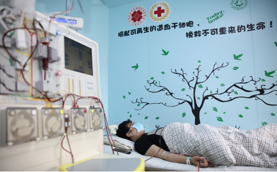 4月15日上午,在ac米兰官网中文网站一院血液肿瘤中心造血干细胞移植病房内,刘思远在造血干细胞移植病房主任范圣瑾和工作人员的陪伴下,经过3个多小时、40多次的循环采血,从他7000ml全血中收集了200ml含有足够受者进行骨髓移植活的干细胞悬液。成为ac米兰官网中文网站第2位成功捐献造血干细胞的在校学生,黑龙江省第123例成功捐献造血干细胞的捐献者。