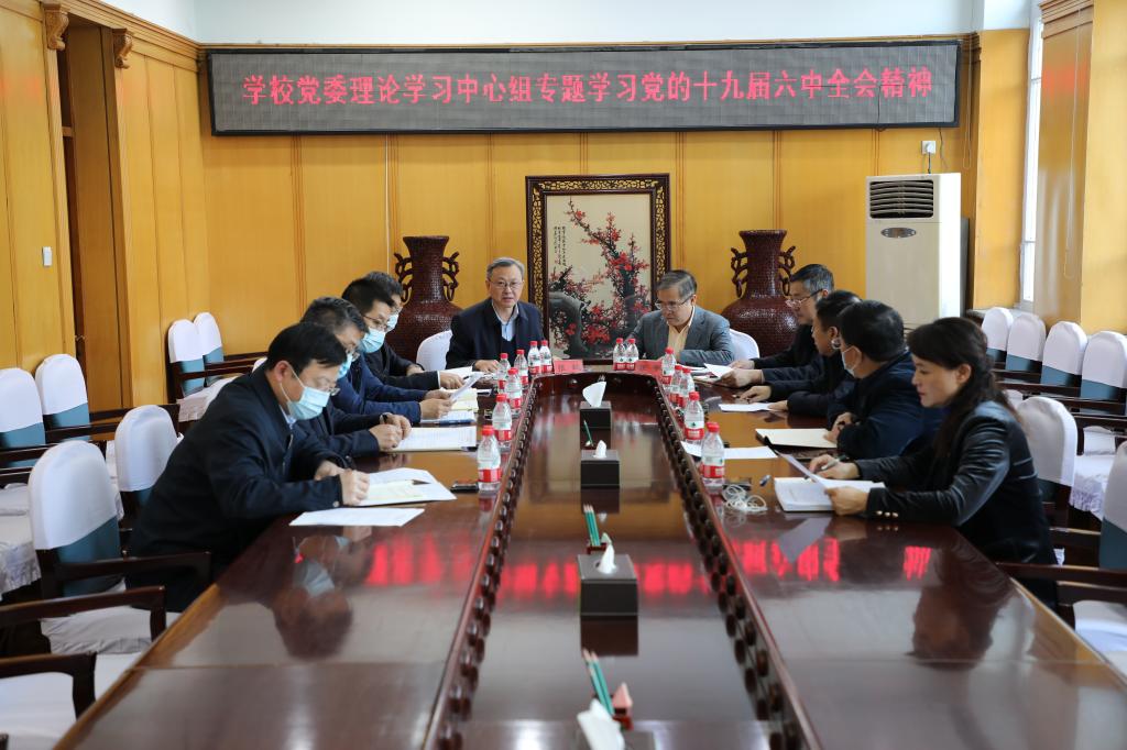 11月15日,学校党委在主楼二楼大会议室召开党委理论学习中心组会议,专题学习党的十九届六中全会精神。党委书记张斌和校长张学作中心发言,其他班子成员结合自身工作情况作了发言。张斌主持会议。
