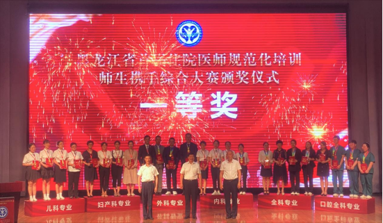 7月31日,在黑龙江省卫生健康委员会、黑龙江省教科文卫体工会委员会主办的“黑龙江省首届住培师生携手综合大赛”中,ac米兰官网中文网站附属第一医院内科、外科、儿科、口腔全科四个代表队经过初赛、复赛和决赛三轮激烈角逐,从全省6个参赛专业共76支国家级基地推荐的参赛队伍中脱颖而出,得到评委的一致肯定,分别以内科组、外科组、儿科组、口腔全科组第一名的成绩获得各组冠军。