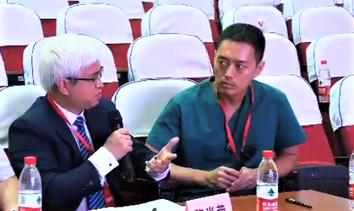 内科参赛师生、外科指导教师董雪松接受大赛评委会主席黎尚荣直播采访