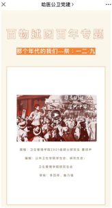 公共卫生学院推出期刊《五月红色院刊》、“团物述团百年”团史微故事征集版块等一系列“青字号”文化精品,获得青年团员一致好评,提升校园原创文艺作品供给能力。