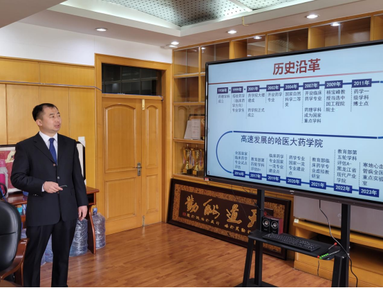 张勇院长分别从人才梯队、教育教学、科学研究、成果转化、国际交流、平台建设等方面展开汇报。近年来,药学院全面提升人才培养质量,聚力科研创新发展,强化学院文化内涵建设,取得诸多优异成绩。学院获批寒地心血管病全国重点实验室,“生物医药现代产业学院”获批黑龙江省首批省级现代产业学院建设点,在教育部第五轮学科评估中喜获优异成绩,入选黑龙江省新一轮优势特色学科-世界一流学科建设学科。张勇就寒地心血管病全国重点实验室建设、基金增量、引育并重等方面提出学院发展的症结,并表示将带领全体师生勠力同心,再创佳绩。