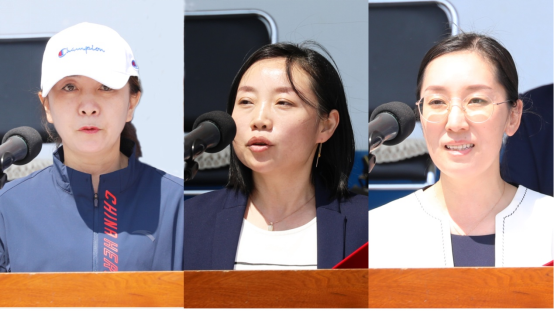 总裁判长李霞、体育道德风尚评选组副组长李书君、宣传组副组长马文超宣布成绩及获奖单位