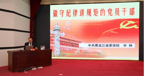 本次培训精心设计了专题辅导讲座、分组交流研讨等教学内容。培训坚持固本培元,邀请黑龙江省委党校朴林教授,以《认真学习<中国共产党纪律处分条例>,做守纪律讲规矩的党员干部》为题,深入浅出、生动形象的讲述了党员干部守纪律讲规矩的重要意义、主要内容,违纪违规的主要表现、原因所在以及守纪律讲规矩的努力方向,对全校党员、干部进一步增强纪法意识、筑牢廉洁防线,加强自我约束、提高免疫能力,都具有重要的借鉴意义和参考价值。