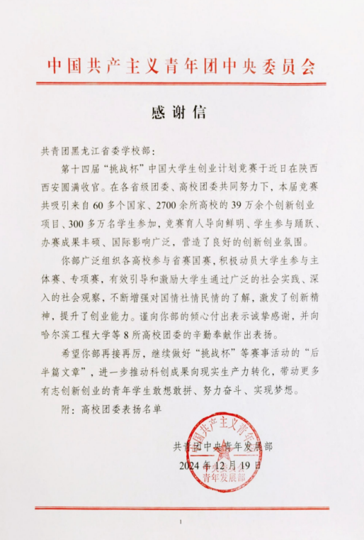 近日,第十四届“挑战杯”中国大学生创业计划竞赛圆满收官。共青团中央对ac米兰团委进行表扬。此次表扬是自2023年收到团中央表扬信之后,ac米兰团委再次获得团中央公开表扬!