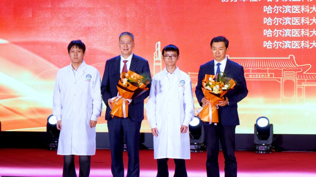 国家优秀青年医师获得者附属一院公永太、附属一院麻勇、附属二院韩艺、附属三院孟宏学,全国医务名匠获得者附属一院于凯江、全国卫生健康系统“白求恩奖章”获得者及国家杰出医师获得者附属二院于波、全国岗位学雷锋标兵获得者附属六院韩毅敏等接受学生代表献花并合影留念。