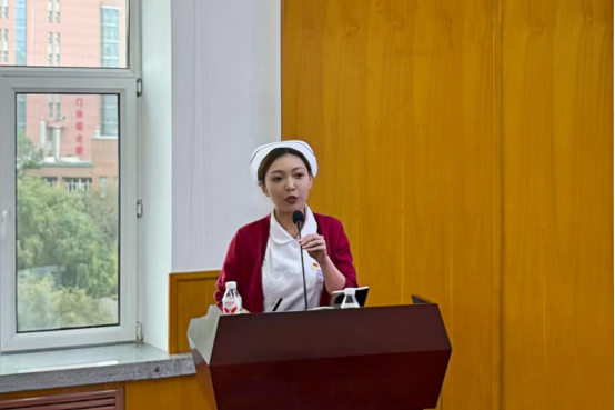 胸部放疗一、四病房护士长高巍以《热爱为灯,执匠心前行》为题,讲述扎根临床十六年的职业经历。从主动请缨奔赴抗疫一线,到积极开展护理健康教育、投身科普公益,再到精心培育护理团队、凝聚团队战斗力,她用一个个生动案例诠释了“敬佑生命、救死扶伤、甘于奉献、大爱无疆”的职业精神,展现了新时代女性护理工作者的坚韧与智慧,赢得了在场听众的阵阵掌声。
