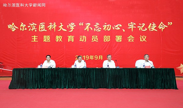 张斌代表学校党委对开展主题教育做了动员部署。第一,提高站位,统一思想,充分认识“不忘初心、牢记使命”主题教育的重大意义。张斌指出,在中华人民共和国成立70周年之际,在全党开展“不忘初心、牢记使命”主题教育,是以习近平同志为核心的党中央统揽伟大斗争、伟大工程、伟大事业、伟大梦想作出的重大部署,具有十分重大的意义。开展好这次主题教育的一个重要前提,就是要提高政治站位,统一思想认识,深刻领会这次主题教育的重大意义,真学真做,真改真干,切实让主题教育取得实效。要充分认识开展主题教育是用习近平新时代中国特色社会主义思想武装全党的迫切需要,始终确保办学治校的正确政治方向;要充分认识开展主题教育是推进新时代党的建设的迫切需要,努力为实现学校发展建设新突破提供有力政治保障;要充分认识开展主题教育是保持党同人民血肉联系的迫切需要,努力打造心中有党、心中有民、心中有责、心中有戒的党员干部队伍。第二,联系实际,把握要求,落实开展“不忘初心、牢记使命”主题教育的目标任务。张斌强调,习近平总书记指出,开展主题教育的总要求是守初心、担使命、找差距、抓落实;具体目标是理论学习有收获、思想政治受洗礼、干事创业敢担当、为民服务解难题、清正廉洁作表率。这体现了党对新时代党员干部思想、政治、作风、能力、廉政方面的基本要求。我们必须认真学习、深刻领会,积极推进,推动主题教育取得扎扎实实的成效。第三,突出重点,狠抓落实,推动“不忘初心、牢记使命”主题教育扎实深入开展。张斌强调,这次主题教育,以副处级以上领导干部为重点,在学校全体党员中开展。这次动员大会后,学校党委要求全校党员干部第一时间行动起来,将精力投入到主题教育中,不要有“节后再说,等等看”的思想。张斌书记特别对处级以上干部提出了要强化学习教育、深入调查研究、深刻检视问题及抓好整改落实等具体要求。第四,精心组织,周密安排,切实加强“不忘初心、牢记使命”主题教育组织领导。张斌强调,开展主题教育是当前的一项重大政治任务。我们必须强化责任担当,精心组织、周密部署,统筹推进、狠抓落实,确保主题教育工作有力有序、纵深推进。要落实主体责任;要加强督导沟通;要营造浓厚氛围;要坚持统筹兼顾。最后,张斌书记强调,开展“不忘初心、牢记使命”主题教育是全党的一项重大政治任务,也是我们今年的一项重点工作,这给我们全体党员干部追“根”溯“源”、坚守信念、奋发进取提供了一个崭新的历史契机。不忘初心,方得始终,牢记使命,砥砺前行。让我们更加紧密团结在以习近平同志为核心的党中央周围,以高度的政治自觉扎实深入开展主题教育,聚力“双一流”建设目标,打造百年医学强校,为我省全面振兴全方位振兴作出积极贡献,以优异成绩庆祝新中国成立70周年。