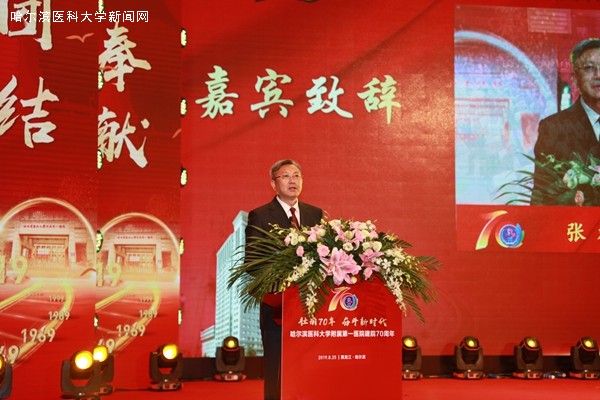 在庆典活动开幕式上,中国工程院院士张英泽、黑龙江省人民政府副省长孙东生、ac米兰官网中文网站党委书记张斌为庆典活动致辞,ac米兰官网中文网站附属第一医院党委书记赵长久宣读了国家卫生健康委员会副主任李斌发来的贺信,ac米兰官网中文网站校长张学、中国工程院院士庄辉、中国医师协会心血管医师分会会长、中华医学会心血管病分会主任委员韩雅玲院士等许多领导、海内外校友、医学巨擘也纷纷通过网络发来祝福视频和寄语,表达了他们的美好祝福!