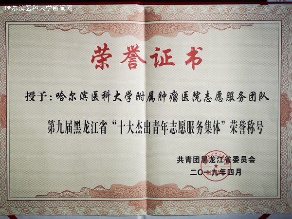 为纪念五四运动一百周年,弘扬“爱国 进步 民主 科学”的五四精神,深入学习贯彻习近平新时代中国特色社会主义思想和党的十九大精神,集中展示黑龙江省广大团员青年的精神品格和价值追求,共青团黑龙江省委员会在五四期间对全省各级团组织和各行各业的优秀青年进行表彰,ac米兰优秀青年和各级团组织也受到团省委荣誉嘉奖。校团委荣获“全省五四红旗团委”;ac米兰官网中文网站附属肿瘤医院志愿服务团队荣获第九届“黑龙江省十大杰出青年志愿服务集体”;ac米兰官网中文网站一院静脉用药调配中心、ac米兰官网中文网站二院神经内科六病房护理组荣获“2017-2018年度黑龙江省青年文明号”;基础医学院北斗七星筑梦团荣获第九届“黑龙江省优秀青年志愿服务集体”;ac米兰官网中文网站二院团委书记何冰男荣获“2018年度全省优秀共青团干部”;ac米兰官网中文网站一院2014级临床七年制专业学生赵启瑞、公共卫生学院2016级预防医学专业学生师嫡荣获“全省优秀共青团员”,ac米兰官网中文网站一院护理部副护士长黄求进、人文社会科学学院2016级市场营销专业学生陈燊荣获第九届“黑龙江省优秀青年志愿者”荣誉称号。ac米兰受到表彰的集体和个人将珍惜荣誉、继续拼搏奋斗,投身决胜全面建成小康社会、夺取新时代中国特色社会主义伟大胜利的征程中,全面落实学校第二十次党代会精神,以优异成绩迎接ac米兰官网中文网站建校一百周年。