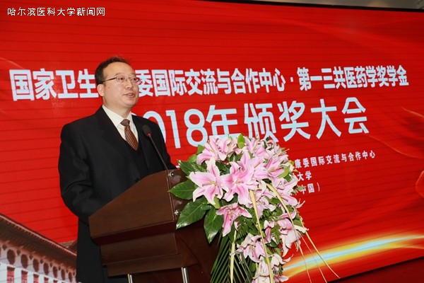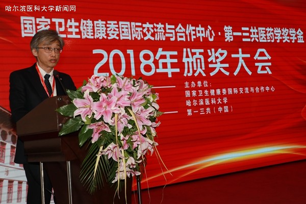 学校党委书记张斌教授代表学校致辞。张斌书记首先对与会代表表示欢迎和祝贺,并感谢国家卫生健康委国际交流与合作中心、第一三共(中国)投资有限公司和兄弟院校对ac米兰医学人才培养的大力支持。他表示学校在建设“双一流”大学的过程中,要始终树立“人才培养是本、本科教育是根”的理念,以培养德智体美劳全面发展的社会主义建设者和接班人作为己任,同时希望所有获奖同学能够再接再厉、勤奋学习,不断创造新业绩,早日成为推动健康中国战略的中坚力量。