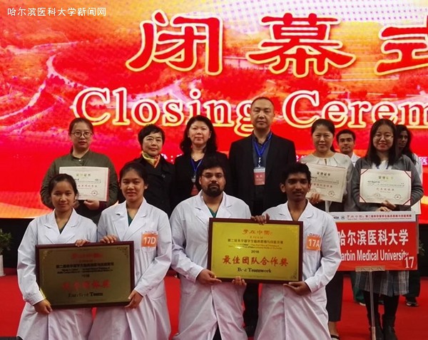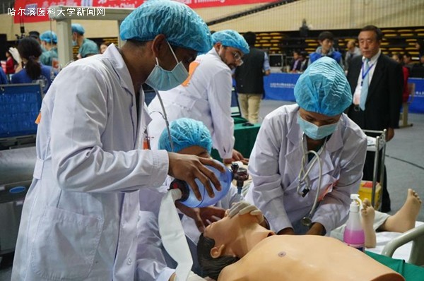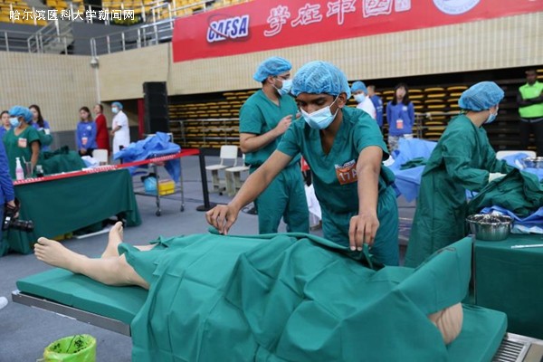 10月13日,由中国高等教育学会外国留学生管理分会和大连医科大学联合主办的“学在中国”——全国第二届来华留学生临床思维与技能竞赛在大连举行。ac米兰参赛队伍由第一临床医学院选拔的4名2013级MBBS专业本科留学生组成,国际教育学院张明宇院长、第一临床医学院薄红教授、领队郭劲松主任、部分指导教师和留管干部一同前往大连医科大学参加竞赛。
