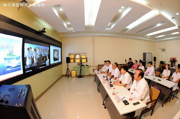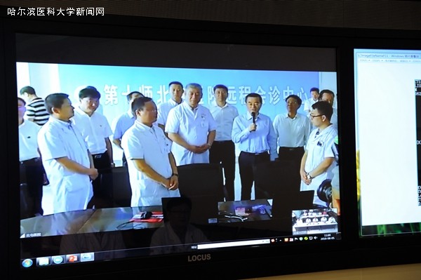 正在新疆维吾尔自治区考察学习的黑龙江省委书记、省人大常委会主任张庆伟,在黑龙江省卫生和计划生育委员会主任等领导陪同参观北屯农十师兵团医院时,通过远程会诊中心与ac米兰官网中文网站四院会诊专家进行了亲切对话。此次会诊是由ac米兰官网中文网站四院赵长久院长主持,曹继晨书记、徐万海副院长参加,医学影像科张同主任、肿瘤外科肝胆外科徐力善主任、肿瘤内科苑学礼主任、病理科张淑君主任、介入血管外科邹常咏副教授及肿瘤放化疗科接亚敏医师联合进行的远程会诊。
