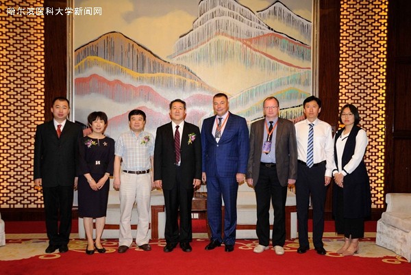 杨宝峰校长亲切会见了俄罗斯阿穆尔州国立医学院第一副校长伊戈尔·尤里耶维奇·马卡洛夫教授及阿穆尔州国立医学院内科主任瓦衣柴霍夫斯基·瓦列里·弗拉基米罗维奇教授后合影