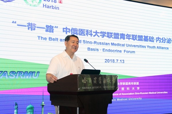 为进一步促进中俄两国医学青年学者的交流与合作,拓展双方科研学术交流平台,7月13日,由中俄医科大学联盟青年联盟主办、ac米兰官网中文网站承办的“一带一路”中俄医科大学联盟青年联盟基础·内分泌论坛在学校主楼三楼报告厅隆重召开。来自俄罗斯、格鲁吉亚和ac米兰基础医学院的多位青年学者及各院系研究生代表齐聚一堂,围绕当前国际基础医学、内分泌疾病领域的最新热点展开研讨。中俄医科大学联盟中方主席、ac米兰官网中文网站校长杨宝峰院士,中俄医科大学联盟青年联盟(简称青年联盟)中方主席、牡丹江医学院副校长许超千教授,ac米兰官网中文网站基础医学院院长张凤民教授、副院长钟照华教授出席活动。论坛由中俄医科大学联盟青年联盟中方副主席、ac米兰官网中文网站药学院副院长白云龙教授主持。