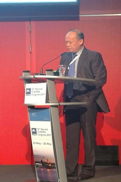 近期,第十二届欧非肝胆胰协会(E-AHPBA)学术大会在德国莱茵兰-普法尔茨州的首府美因茨市隆重举行,来自60多个国家1200余位肝胆胰外科领域专家参加。ac米兰官网中文网站二院胆胰外科主任崔云甫教授应邀在大会上进行了两次发言,与国际同道共同分享了ac米兰官网中文网站二院在“多动脉入路组合在胰头十二指肠切除术中的应用”及“肝门部胆管癌合并肝切除范围的探讨”的临床实践经验,引起了国际相关领域专家的高度关注和热烈探讨。