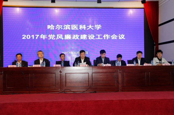 校党委书记王永清同志以《从严治党,从严执纪,从严执政,为建设和谐发展的高水平医科大学努力奋斗》为题发表讲话。讲话共分三部分。第一,深刻理解全面从严治党重要论述,把管党治党进一步引向深入。全面从严治党是以习近平同志为核心的党中央治国理政的鲜明特色。在推进全面从严治党新的实践中,总书记围绕从严管党治党提出一系列新的重要思想,为新的历史条件下加强党的建设提供了根本遵循,需要我们深刻理解,准确把握。一是深刻理解全面从严治党的重大意义和战略布局,二是深刻理解贯彻落实全面从严治党主体责任,三是深刻理解全面从严治党就是要加强和规范新形势下的党内政治生活,四是深刻理解全面从严治党就是要坚持思想建党和制度治党紧密结合,五是深刻理解全面从严治党就是要牢固树立“四个意识”,六是深刻理解全面从严治党就是要从严管理干部,七是深刻理解全面从严治党就是要持续深入改进党的作风。第二,坚持从严执纪重要要求,努力打造风清气正的政治生态。全面从严治党的关键在全面从严执纪,纪委要把违反六项纪律和“八项规定”作为执纪重点,维护纪律的严肃性,通过从严执纪来贯彻党的路线方针政策,净化纯洁党的队伍,达到全面从严治党,为振兴发展营造风清气正的政治生态。一是严明党的纪律,把从严治党落到实处;二是加强党内监督,将从严治党关口前移;三是把权力关进制度的笼子,对腐败零容忍;四是强化纪委监督执纪问责职能,加强纪委自身建设。第三,坚持从严执政重要精神,努力构建和谐的大学文化。要坚持立德树人,强化思想引领,坚持和完善党委领导下的校长负责制,进一步从严执政,加强管理。一是立德树人,坚持社会主义办学方向;二是民主集中,坚持和完善党委领导下的校长负责制;三是依法治校,以法治思维和法治方式推进和保障学校改革发展;四是严格管理,全面推进治理体系和治理能力现代化。