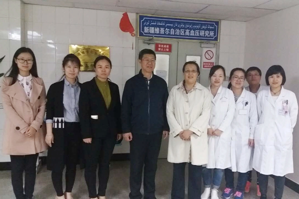 为完成“我国重大寒地疾病(高血压)防控对策国际比较研究”项目任务,总结我国北方在高血压防控方面的优势和经验,梳理及分析尚存问题,受课题组组长杨宝峰校长的指派,课题组主要成员孙殿军教授、田野教授、郭宏副教授和工作组成员张微副研究员、李丹丹助理研究员、张海玉助理研究员组成调研组,于5月7日-9日赴新疆维吾尔自治区进行考察调研工作,调研组由地病中心孙殿军主任带队。本次考察及调研的对象是新疆维吾尔自治区人民医院高血压诊断治疗研究中心(新疆维吾尔自治区人民医院高血压研究所)和自治区高血压防治示范基层单位。