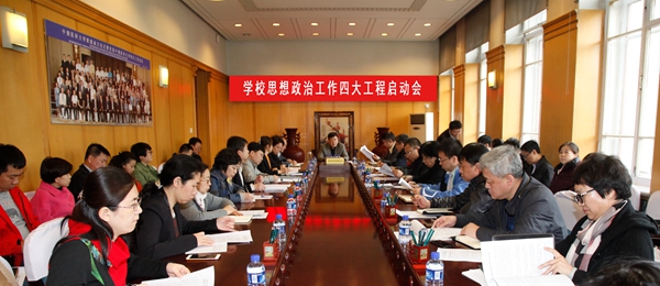 4月26日,学校党委在主楼二楼大会议室召开思想政治工作四大工程启动会。校党委书记王永清、副校长曹德品出席会议,学校相关部处负责人、二级学院党委(直属党总支)书记、副书记、学生总支书记、研究生总支书记参加会议。会议由王永清同志主持。
