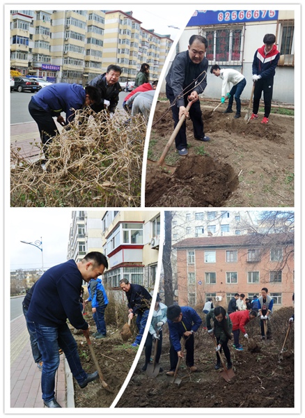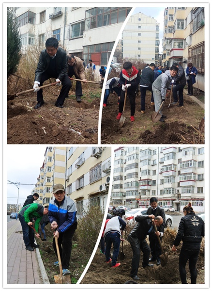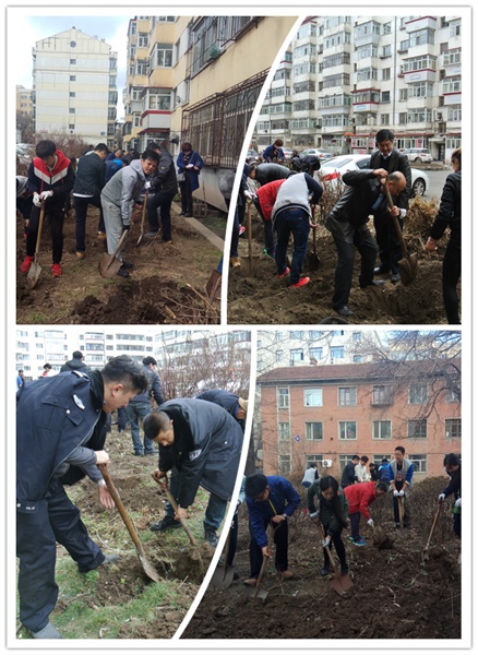 4月19日上午,为响应《省教育厅转发黑龙江省人民政府绿化委员会黑龙江省林业厅《关于印发2017年全民义务植树活动方案的通知》,后勤党总支、武装保卫党支部、研究生学院党支部的党员群众和部分研究生、对家属区绿地进行了专项清理。