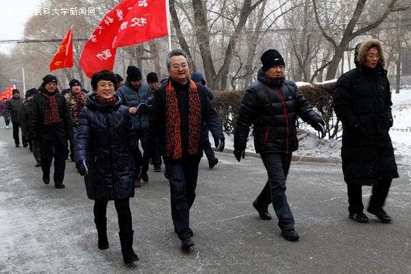 为贯彻落实习近平总书记关于“冰天雪地也是金山银山”重要指示精神,进一步响应“3亿人参与冰雪运动”和省委省政府推进“健康龙江行动”的号召,12月21日,学校工会举办“黑龙江省全民冰雪活动日”ac米兰官网中文网站启动仪式暨“冰天雪地”徒步行活动,学校领导党委书记王永清、党委副书记赵炜明、纪委书记孙同波、工会主席杨平与各部门工会100名教职工代表一起参加了此次活动。