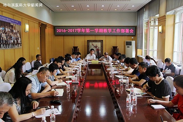 8月23日下午,曹德品副校长主持召开2016-2017学年第一学期普通教育教学工作部署会,学校教学督导委员会副主任韩玉霞教授、首席督导谷鸿喜教授,教务处、高评中心负责人,各学院主管教学和学科的副院长、科长及相关人员参加了本次会议。