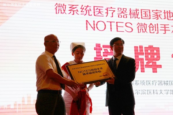 二院消化内科与“微系统医疗器械国家地方联合工程研究中心”联合成立了“NOTES微创手术技术研究中心”。上图为国家工程研究中心许杰主任给“NOTES微创手术技术研究中心”主任刘冰熔教授授牌。