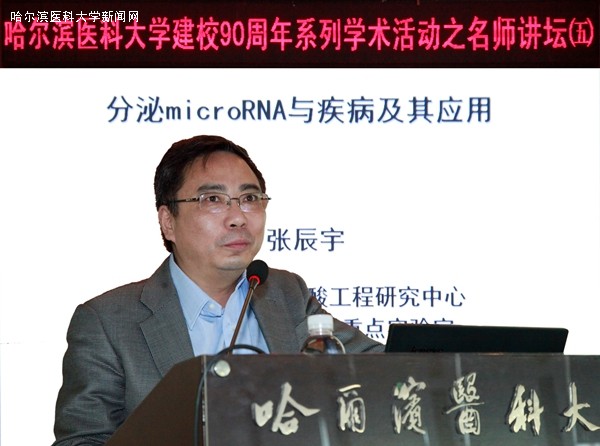 张晨宇教授在题为《分泌microRNA的应用及在疾病发生发展过程中的机制研究》的报告中,介绍了microRNA的相关知识,并讲解了相关研究的进展,接下来介绍了其课题组在人类血清中发现了细胞外miRNA,并证明其可以作为一种非侵入性的新型疾病标志物,用于肿瘤等疾病的早期诊断、预后判断及疗效判定等方面开创性的发现过程。另外张教授对其团队发现食物中的植物miRNA可以通过食物摄取的途径进入动物的血液循环和组织器官,通过调控动物体内靶基因表达的方式影响生理功能等颠覆性研究做了细致的讲解。最后简要概述了以外泌体为载体的miRNA递送系统在临床治疗研究中的应用前景。报告过后,张教授一一解答了师生们提出的相关问题。