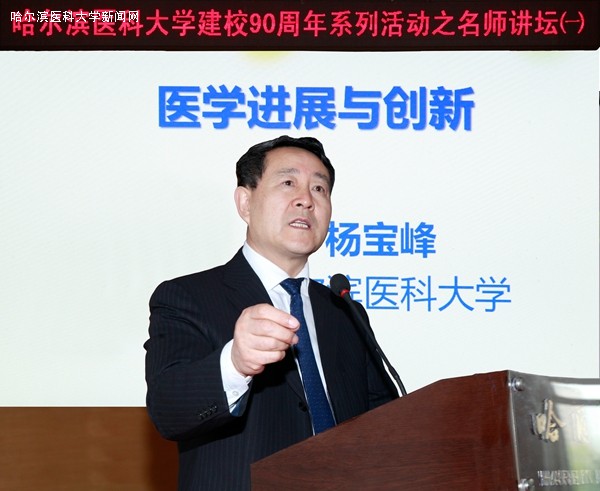 5月5日下午3:00,ac米兰官网中文网站主楼三楼演讲厅座无虚席,许多听众站在会场两侧,聆听校长杨宝峰院士《医学创新给我们的启示》的精彩学术报告。本次报告由党委副书记曹景文主持,副校长袁重胜、纪委书记孙同波和机关各部门的同志与青年教师、博士硕士研究生和本科生代表一同聆听了讲座。