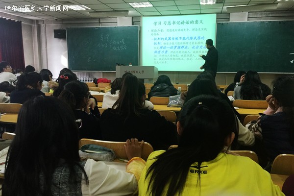 3月4日下午13点30分,药学院三楼16号教室,临床药学专业的百余名同学走进课堂聆听马克思主义学院任守双老师讲授的《习近平总书记系列重要讲话专题辅导》的导言课程。