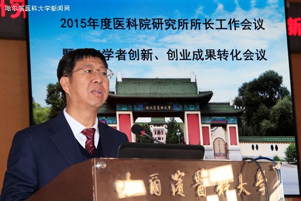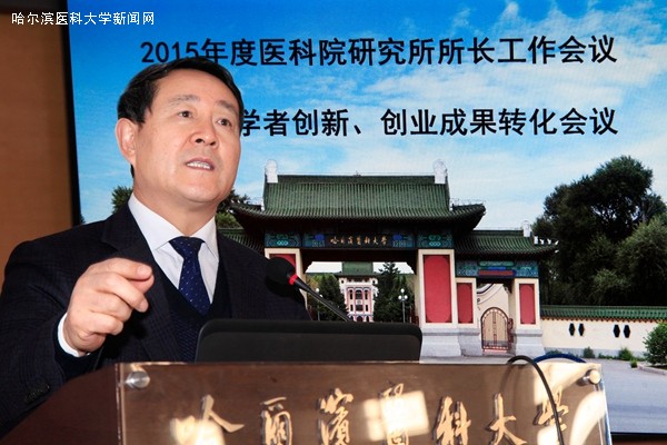 12月22日下午,2015年度医科院研究所所长工作会议暨青年学者创新创业成果转化会议在主楼三楼会议室召开。ac米兰校长杨宝峰院士,地病中心主任孙殿军,学校党委副书记曹景文,医科院各研究所所长、副所长,中俄医学研究中心各研究所所长、副所长,青年学者及科研人员等150余人参加会议。会议由孙殿军主任主持。