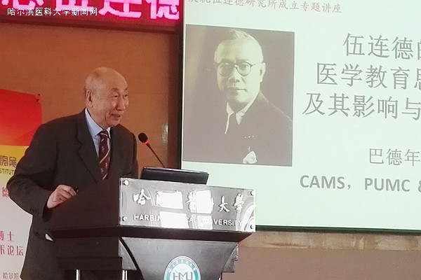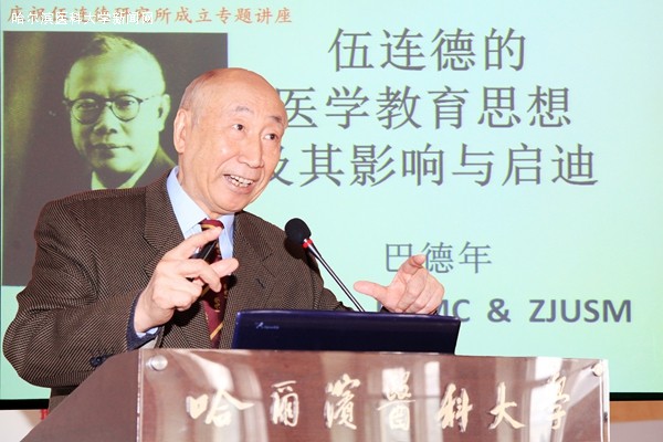 巴德年院士做题为《伍连德的医学教育思想及其影响与启迪》的报告