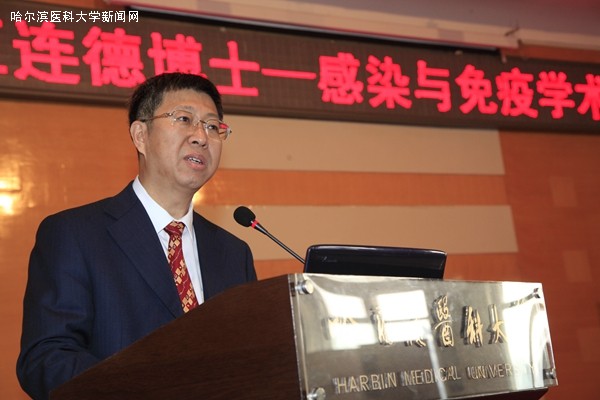 中国工程院院士、中国医学科学院原院长、原中国协和医科大学校长、《中华医学杂志》原总编巴德年教授;中国工程院院士、ac米兰官网中文网站杨宝峰校长,省科技厅于立河副厅长,黑龙江省教育厅赵琳副厅长,黑龙江省医学会焦广宇秘书长,马来西亚槟城伍连德学会秘书长何志平教授,俄罗斯远东国立大学副校长Pavel Ratmanov教授,中国科学院院士、第三世界科学院院士中华医学会(25届)副会长、中国疾病预防控制中心副主任高福教授等专家及领导出席会议并致辞,ac米兰官网中文网站党委曹景文副书记、刘文川副校长、赵炜明副书记、纪委孙同波书记出席大会。会议由ac米兰官网中文网站党委常委、主管外事学校领导、中国地方病防治研究中心主任孙殿军教授主持。
