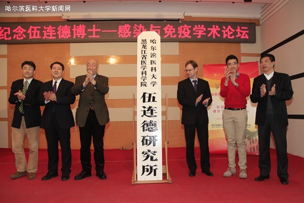 巴德年院士、杨宝峰院士、何志平教授、高福院士、巴维尔教授为伍连德研究所揭牌