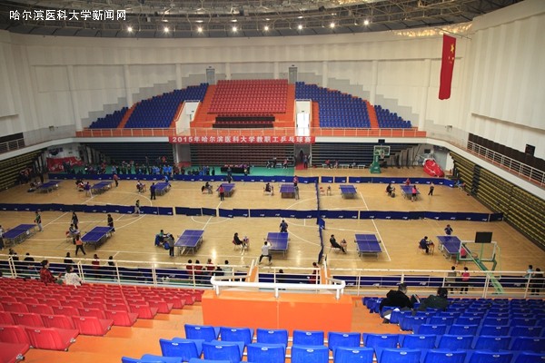 11月7日下午4时,由校工会主办的2015年教职工乒乓球比赛在校部体育馆圆满落幕。本次比赛各直属单位和部门工会高度重视,积极组织广大教职工参与,共有14个单位包括专家、教授、离退休老干部在内的近190余名运动员参赛。学校领导杨宝峰校长、曹景文副书记、曹德品副校长,纪委书记马宏坤,工会主席杨平来到比赛现场。