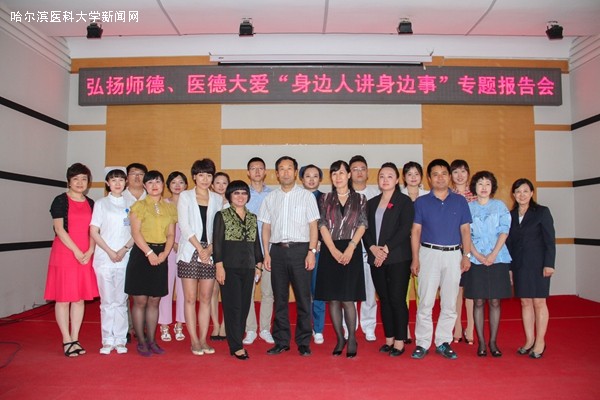7月2日下午,弘扬师德、医德大爱“身边人讲身边事”专题报告会在学校主楼三楼举行。发生在我们身边的一个个既平凡又感人至深的故事在这里被一一讲述。党委宣传统战部陈英云部长主持报告会,党委曹景文副书记参加会议并讲话,纪委马宏坤书记、工会杨平主席出席报告会。