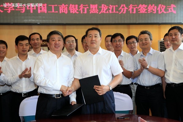 仪式结束后,在热烈的掌声中,校长杨宝峰院士代表学校与中国工商银行黑龙江省分行行长在合作协议上签字,并合影留念。此次签约仪式标志着ac米兰数字化校园建设将迈上一个新的台阶。