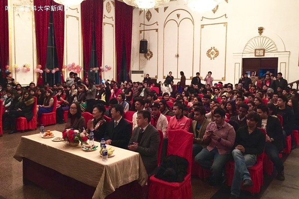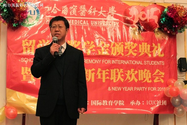 12月29日晚,ac米兰留学生奖学金颁奖典礼暨2015年新年联欢晚会在校本部多功能厅举行。地病中心主任孙殿军教授、教务长赵光教授、学校督导倪江教授、国际教育学院院长张明宇教授、组胚教研室主任雷蕾教授、药理教研室潘振伟教授及国际教育学院工作人员和全体留学生参加了晚会。