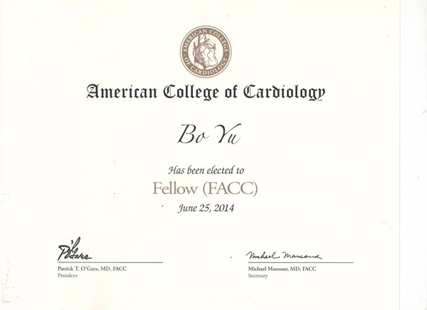 据悉,成立于1949年的美国心脏病学院是目前全球最具影响力的国际性心血管病专业组织。美国心脏病学院院士(FACC)被美国心脏病学院定义为“取得心血管病医学最高学术成就的资深ACC医师会员”,需经美国心脏病学院专科会员资格认证委员会严格评审,只授予全球在心血管医学领域作出突出贡献、具有很强影响力的心血管病专家。