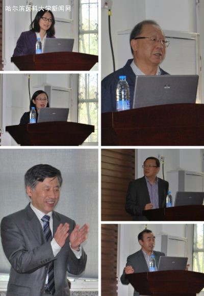 图片左上雷蕾教授、左中李冰教授、左下刘树林教授、
