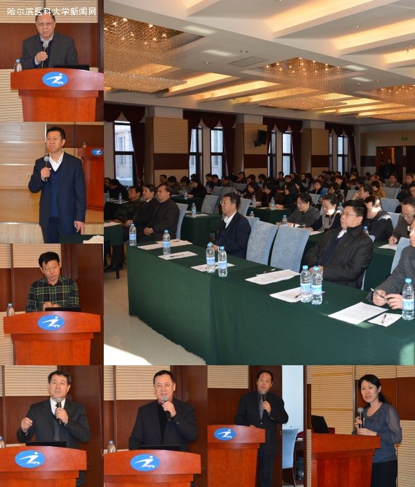 图片左上和左中分别为金连弘教授和孙殿军教授主持论坛,左下,下一、下二、下二、下四分别为姜洪池教授、杨宝峰院士、庞达教授、赵世光教授和金艾顺教授先后进行报告